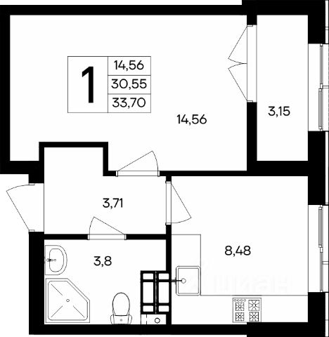 Общая площадь квартиры: 21.5 кв.м