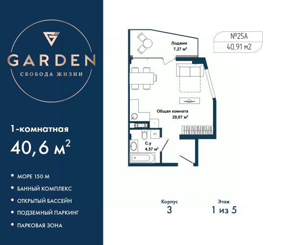 GARDEN расположен в самом сердце Севастополя, на первой береговой линии Черного моря в Гагаринском районе. - Растущий в цене актив в лучшей локации Севастополя - Инвестируйте c доходностью от 23% годовых - Доход на сдаче в аренду от 1,8 млн ₽ в год Премиальный апарт-комплекс GARDEN отличное решение для жизни, отдыха и инвестиций. В шаговой доступности: - Три оборудованных пляжа - Парк Победы - Набережная с потрясающими видами на море и закаты - Аквапарк "Зурбаган" - Яхт-клуб "Юг" Развитая инфраструктура комплекса: - Круглогодичный подогреваемый бассейн для отдыха в любое время года - СПА-комплекс с сауной, хамамом и массажным кабинетом - Детские и спортивные площадки для активного досуга - Фитнес центр - Тематические рестораны, бары, кофейни, кондитерские, разноплановые торговые объекты - Современные зоны отдыха с ландшафтным дизайном Застройщик ООО "СЗ "Грин", ИНН 9201004298, адрес: Республика Крым, г. Севастополь, ул.Летчиков, корпус 3-4, секция 1, 2 этаж 1-комн. апартаменты с отделкой в жилом комплексе бизнес-класса "Garden". Общая площадь: 40.6 кв.м., комната 16.67 кв.м., площадь кухни: 5 кв.м. Все окна выходят на одну сторону. В квартире одна лоджия, один совмещенный санузел. Высота потолков 2.7 м. #2M2403 Продается 1-комнатная квартира на 1 этаже в Севастополе.