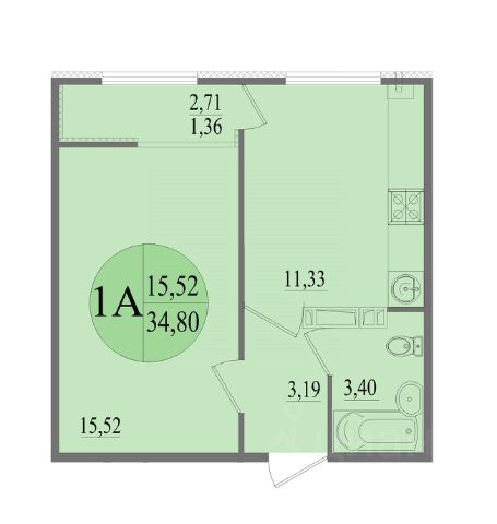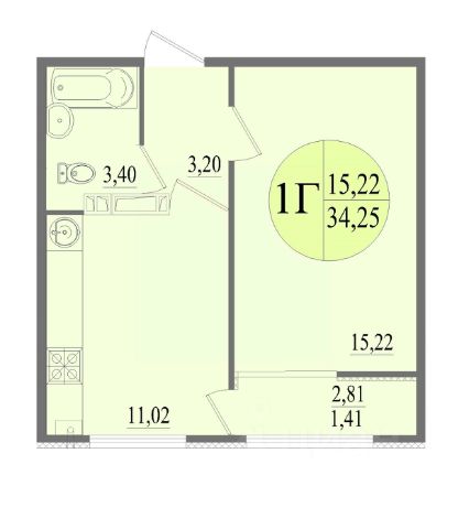 -Жилая площадь: 15,6 м2