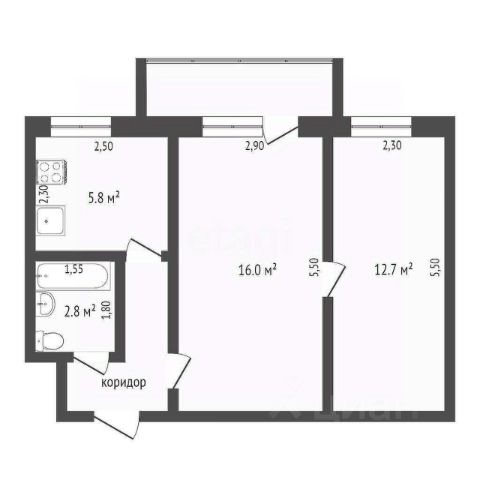 Высота потолков: 2,5 м