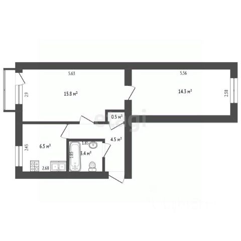 Общая площадь квартиры: 44,3 кв.м