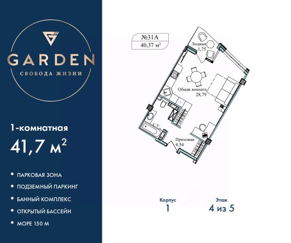 GARDEN расположен в самом сердце Севастополя, на первой береговой линии Черного моря в Гагаринском районе. - Растущий в цене актив в лучшей локации Севастополя - Инвестируйте c доходностью от 23% годовых - Доход на сдаче в аренду от 1,8 млн ₽ в год - Рассрочка 0% от застройщика Премиальный апарт-комплекс GARDEN отличное решение для жизни, отдыха и инвестиций. В шаговой доступности: - Три оборудованных пляжа - Парк Победы - Набережная с потрясающими видами на море и закаты - Аквапарк "Зурбаган" - Яхт-клуб "Юг" Развитая инфраструктура комплекса: - Круглогодичный подогреваемый бассейн для отдыха в любое время года - СПА-комплекс с сауной, хамамом и массажным кабинетом - Детские и спортивные площадки для активного досуга - Фитнес центр - Тематические рестораны, бары, кофейни, кондитерские, разноплановые торговые объекты - Современные зоны отдыха с ландшафтным дизайном - Подземный паркинг и наземные парковочные места Застройщик ООО "СЗ "Грин", ИНН 9201004298, адрес: Республика Крым, г. Севастополь, ул.Летчиков, корпус 3-4, секция 1, 2 этаж Просторные 1-комн. апартаменты с отделкой на 4 этаже в жилом комплексе бизнес-класса "Garden". Общая площадь: 41.7 кв.м., комната 23.79 кв.м., площадь кухни: 5 кв.м. Все окна выходят на одну сторону. В квартире одна лоджия, один совмещенный санузел. Высота потолков 2.7 м. #ZsSi65 Продам 1-комнатную квартиру с евроремонтом на улице Летчиков в городе Севастополь.