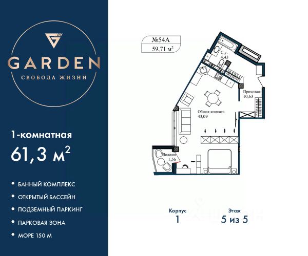 GARDEN расположен в самом сердце Севастополя, на первой береговой линии Черного моря в Гагаринском районе. - Растущий в цене актив в лучшей локации Севастополя - Инвестируйте c доходностью от 23% годовых - Доход на сдаче в аренду от 1,8 млн ₽ в год - Рассрочка 0% от застройщика Премиальный апарт-комплекс GARDEN отличное решение для жизни, отдыха и инвестиций. В шаговой доступности: - Три оборудованных пляжа - Парк Победы - Набережная с потрясающими видами на море и закаты - Аквапарк "Зурбаган" - Яхт-клуб "Юг" Развитая инфраструктура комплекса: - Круглогодичный подогреваемый бассейн для отдыха в любое время года - СПА-комплекс с сауной, хамамом и массажным кабинетом - Детские и спортивные площадки для активного досуга - Фитнес центр - Тематические рестораны, бары, кофейни, кондитерские, разноплановые торговые объекты - Современные зоны отдыха с ландшафтным дизайном - Подземный паркинг и наземные парковочные места Застройщик ООО "СЗ "Грин", ИНН 9201004298, адрес: Республика Крым, г. Севастополь, ул.Летчиков, корпус 3-4, секция 1, 2 этаж Продаются 1-комн. апартаменты с отделкой на 5 этаже в жилом комплексе бизнес-класса "Garden". Общая площадь: 61.3 кв.м., комната 33.09 кв.м., площадь просторной кухни-столовой: 10 кв.м. Все окна выходят на одну сторону. В квартире один балкон, один совмещенный санузел. Высота потолков 2.7 м. #Z55l7U