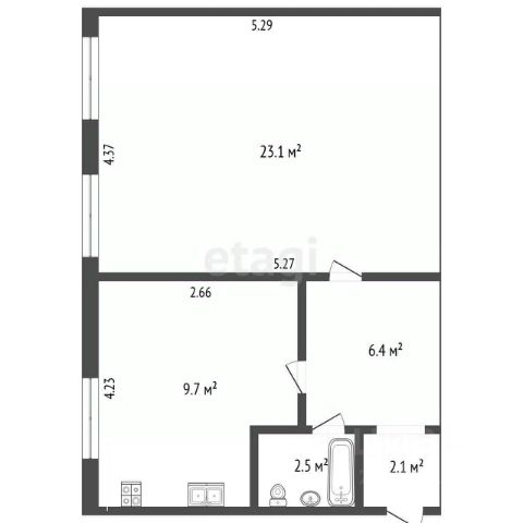 Общая площадь квартиры: 30,4 м2