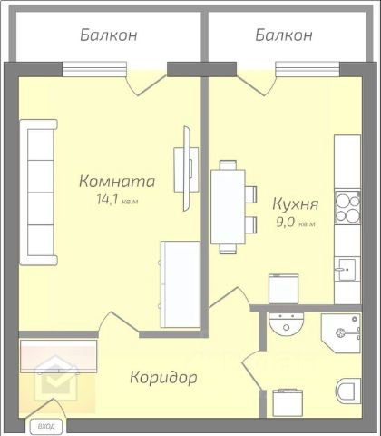 Жилая площадь: 16.3 м²