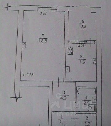 -Высота потолка: 2,55 м
