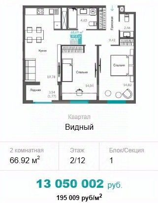 195 067 ₽/м²