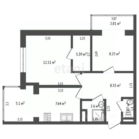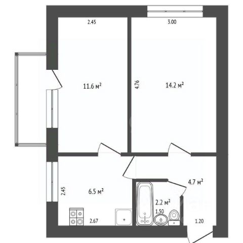 Общая площадь квартиры: 47 кв.м