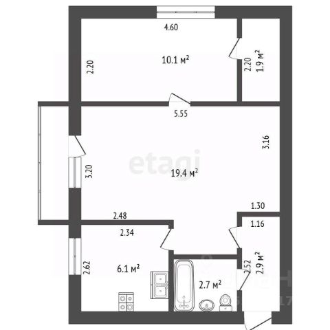 -Общая площадь: 55 м2