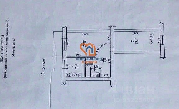 Квартира площадью - 45 м2, расположена на 2-ом этаже 5-ти этажного дома.