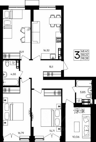 • ✓ В базе Циан 66 3-комнатных квартир без ремонта в районе Балаклавский в городе Севастополь