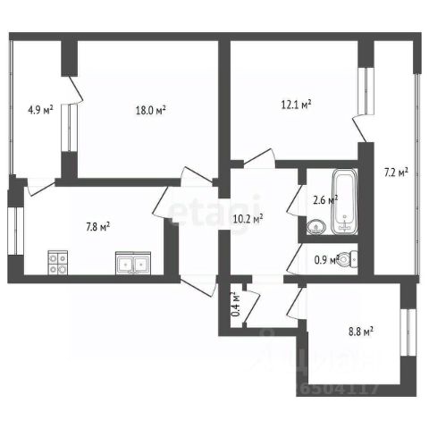Просторная Трехкомнатная квартира 96,5 м2, на 6/10 этаже дома, с просторной кухней 12 м2. Расположена в г. Севастополь, Гагаринский район, пр-кт Античный, д. 8 В.