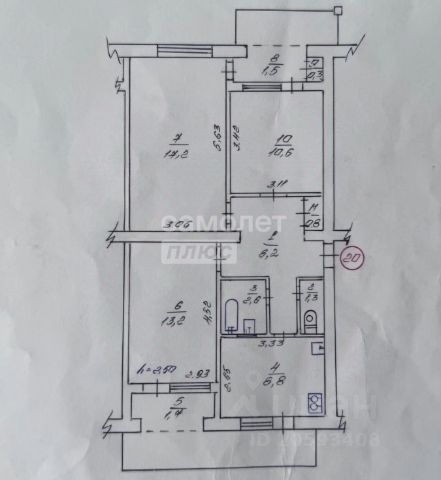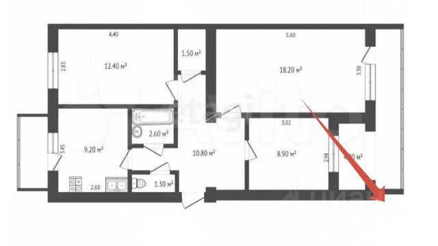 Квартира общей площадью 73,1 м2