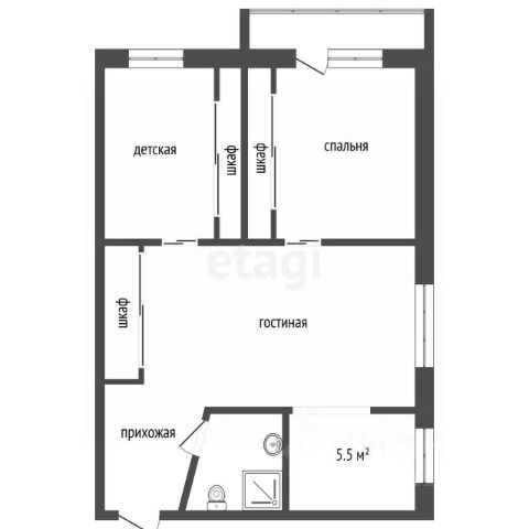 - С/у раздельный 2,2 м2, 1,3 м2