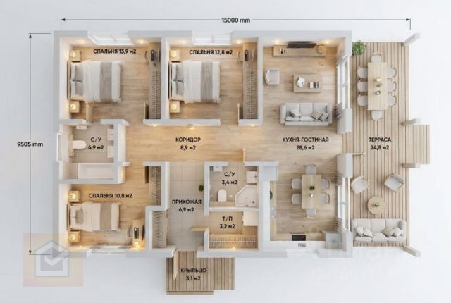 Объект 23011. Если ищете идеальное сочетание качества, близости к природе и потрясающих видов, то предлагаем вашему вниманию этот чудесный дом в Крыму. Особенности дома:- Фундамент: капитальный, выполнен из качественного железобетона.- Стены: блоки ракушечника, обложенные камнем, обеспечивая тепло зимой и прохладу летом.- Покрытие фасада: утеплено и готово к окрашиванию на ваше усмотрение.- Крыша: натуральная черепица с теплоизоляционным слоем, гарантирующая долгий срок службы.- Балкон: огромный, шириной 10 метров и глубиной 1.5 метра, находящийся под защитой навеса.- Проект: разработан профессиональными дизайнерами, воплотившими лучшие решения для комфортного проживания. Расположение:- Расположен в экологически чистом районе с живописными видами на горы Ай-Петри и окрестности.- Гармония природы и удобное расположение: всего в пяти минутах прогулочного шага лес и великолепный природный ландшафт.- Из окон открываются захватывающие дух панорамы окружающих горных вершин, Генуэзских башен и моря.- Транспортная инфраструктура отлично развита: автобусы ходят регулярно, каждые 5-10 минут, доставляя жителей непосредственно в центр Севастополя.- Расстояние до центральной набережной Севастополя составляет всего 20 минут езды машиной.- Любители активного отдыха будут приятно удивлены близостью достопримечательностей, таких как легендарная Сапун-Гора и прекрасные пляжи Балаклавы. Преимущества участка:- Земельный участок ровный, размерами 4,6 соток, расположенный в живописном месте с удобным доступом ко всем необходимым объектам инфраструктуры.- Каменный гараж площадью 50 квадратных метров, предназначенный для размещения двух автомобилей, с возможным расширением пространства под большую беседку или дополнительное жилое здание.- Для комфортного пребывания предусмотрены современные инженерные сети: электричество, водоснабжение городского типа, автономный бетонный септик.- Новый генеральный план предусматривает изменение назначения земли на индивидуальное жилищное строительство (ИЖС). Планировка:- Первый этаж: просторная кухня-гостиная, отдельная спальня, комфортабельный санузел.- Второй этаж: три спальни и дополнительный санузел, обеспечивающие максимум приватности и комфорта. Район отличается тишиной и спокойствием, с постоянными жителями и дружелюбными соседями. Здесь вы сможете насладиться всеми преимуществами загородной жизни, находясь всего в нескольких минутах от всех благ цивилизации.Покупка этого дома станет отличным решением для тех, кто мечтает о собственном уголке счастья в одном из красивейших регионов России. Свяжитесь с нами прямо сейчас, чтобы подробнее ознакомиться с предложением и убедиться лично в привлекательности этого объекта недвижимости!