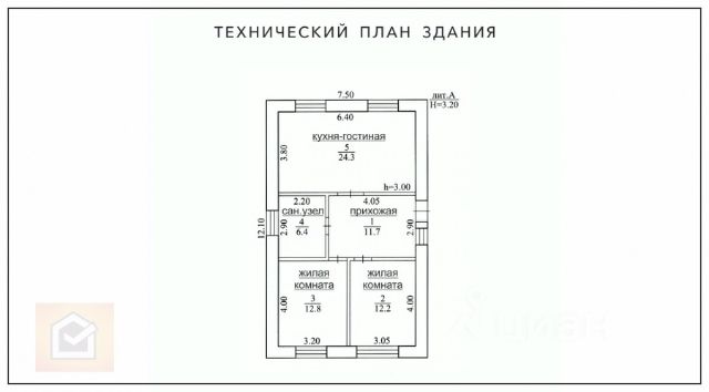Всего 1 этаж, 3 комнаты, санузел ( раздельный 10 кв.м)