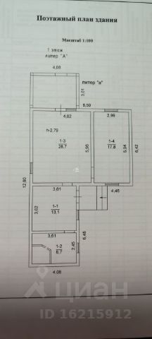 Площади комнат: 28.7, 17.8, 13.