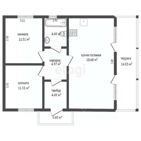 Дом общей площадью 123.7 кв. м.