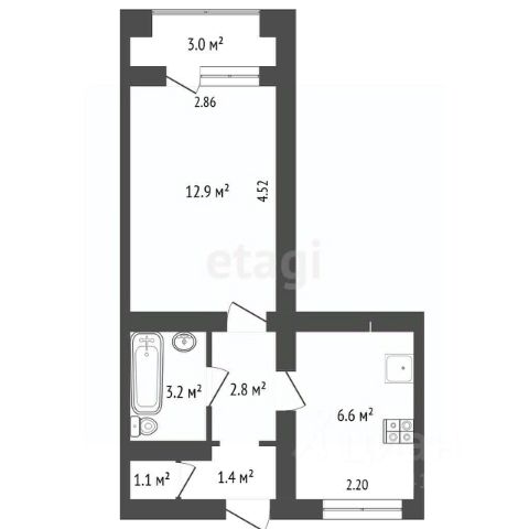 -Балкон: 2,9 м2