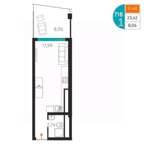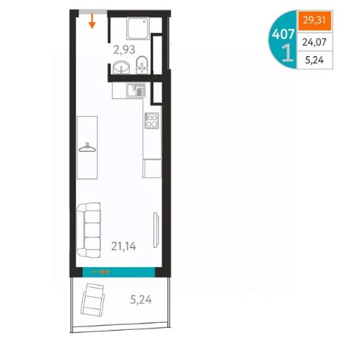 Продается уютная однокомнатная квартира в новом ЖК Аквамарин Park