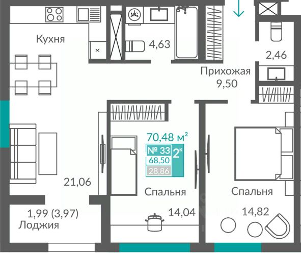 Продаётся 2-комнатная квартира в строящемся доме (Секция 3), срок сдачи: III-кв. 2027, общей площадью 68.48 кв.м., на 2 этаже. Новый жилой квартал "Видный" от застройщика "Монолит" расположен по адресу Севастополь, Балаклавское шоссе