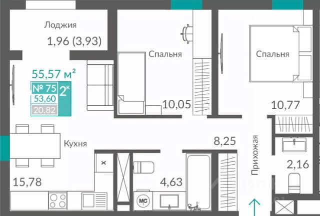 Продаётся 2-комнатная квартира в строящемся доме (Секция 2), срок сдачи: III-кв. 2027, общей площадью 57.69 кв.м., на 2 этаже. Новый жилой квартал "Видный" от застройщика "Монолит" расположен по адресу Севастополь, Балаклавское шоссе