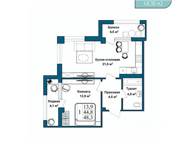 -Жилая площадь: 39 м2
