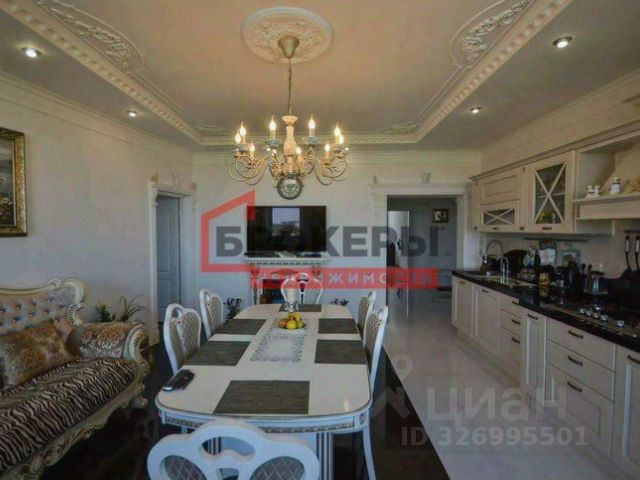 Четырехкомнатная видовая двухуровневая квартира 149 м2, с большой кухней-гостиной 23,9 м2, на 5/6 этаже дома. Расположена в г. Севастополь, Гагаринский район, проспект Античный, д 9.