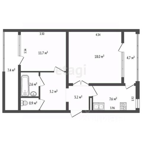Количество комнат: 2
