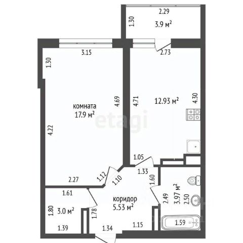 две раздельные просторные спальни 18 и 12 кв.м. Кухня 8 кв.м. Раздельный сантехнический узел.