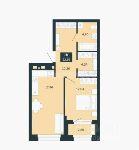 -Площадь кухни: 16.8 м2