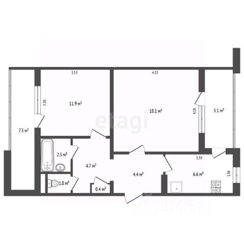 Санузел совмещен.