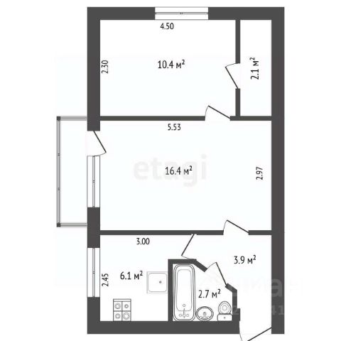 -Общая площадь: 44 м2