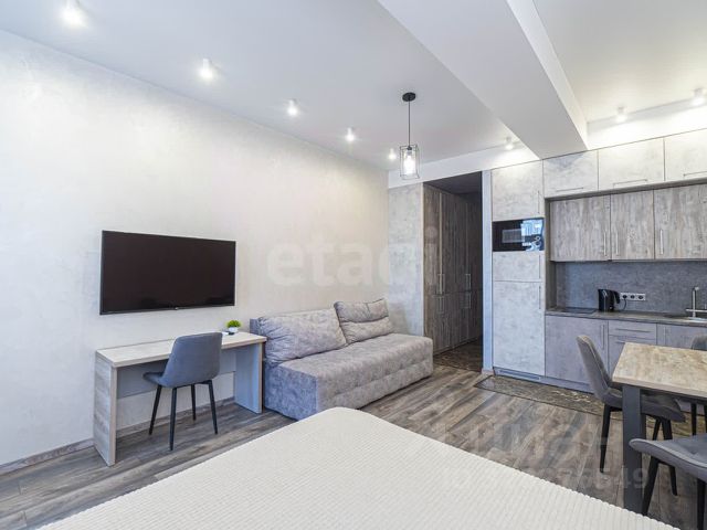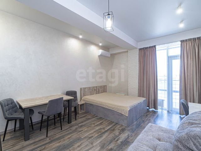 Апартаменты - студия 29 м2, состоят из комнаты 21,64 м2, совмещенного санузла 2,8 м2 и просторной террасы 6,5 м2 с которой открывается великолепный вид на город, парк и Стрелецкую бухту.