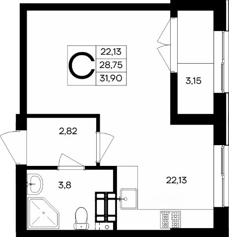 • санузел совмещенный: 3,9 кв.м
