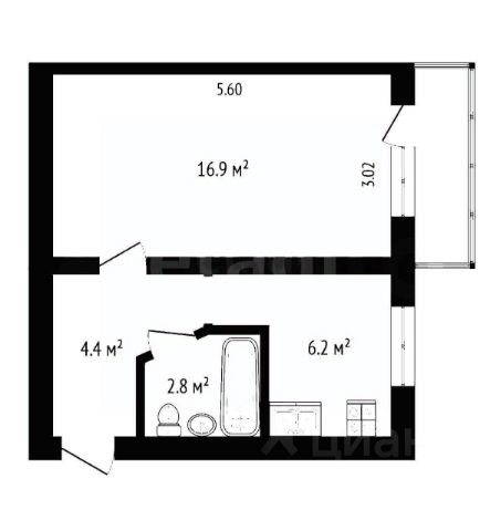 * Жилая площадь: 33 м2