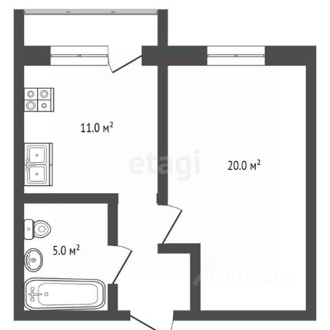 -Жилая площадь: 26 м2