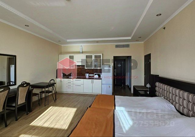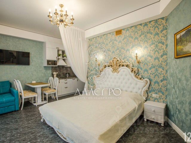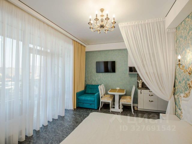 Апартаменты - студия 29 м2, состоят из комнаты 21,64 м2, совмещенного санузла 2,8 м2 и просторной террасы 6,5 м2 с которой открывается великолепный вид на город, парк и Стрелецкую бухту.