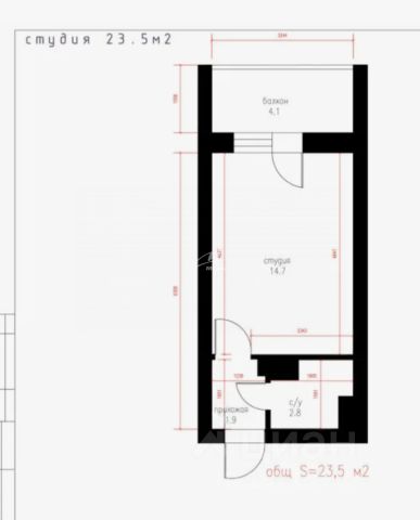 • общая площадь апартаментов: 25 м2