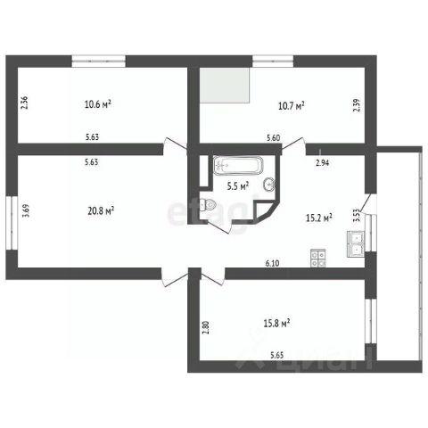 Санузел совмещенный: 2,7кв.м