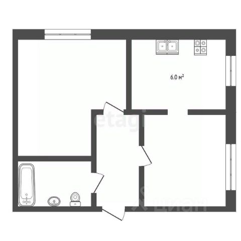 • Планировка: изолированные просторные комната и кухня