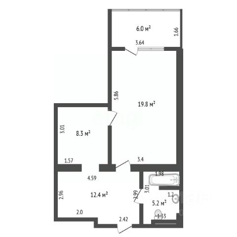 -Общая площадь: 53.3 м2
