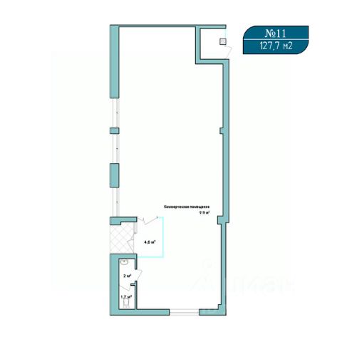 Помещение свободного назначения на 1 этаже, общая площадь 127.7 кв.м., высота потолков 3.52 м., без отделки. Стоимость помещения 34,480,000 руб., цена за кв.м 270,007 руб.