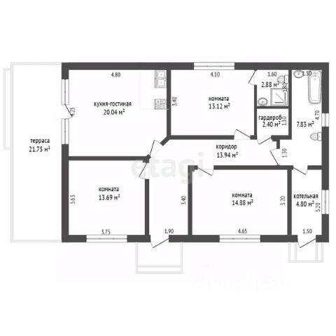 Общая площадь дома 90 кв.м.