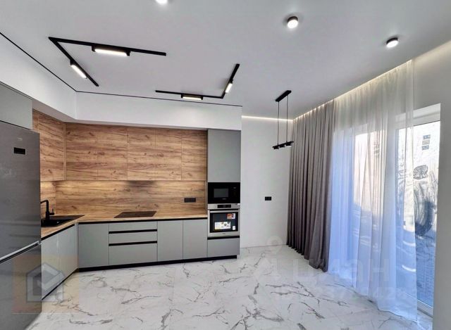 кухня-гостинная 31 м2 с панорамным остеклением
