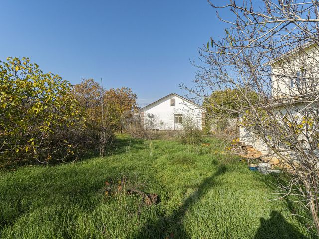 Участок 5,5 соток, (а не 4 сотки как везде, где негде развернуться) огорожен забором высотой в 2 метра из ракушечника. И одно из преимуществ СОСЕДИ НА УЧАСТОК НЕ СМОТРЯТ СО ВСЕХ СТОРОН! Есть два небольших сарая так же из ракушечника. Въезд на участок через распашные ворота с калиткой. Место под две машины, можно поставить и три. Деревья большой грецкий орех, инжир, и молодая слива, персик, виноград. Все приносит плоды.