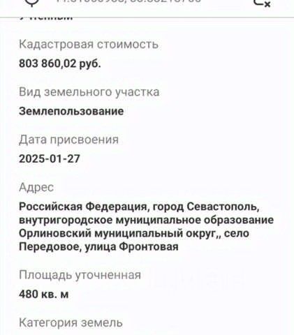 Продаю 15 соток ИЖС в с. Передовой в Байдарской долине!!! Участок ровный, прямоугольной формы. Размер участка: ширина 18 м, длина 76 м. Ширины с учетом градотступов достаточно для постройки дома до 12 метров по фасаду. Участок частично огорожен заборами от соседей по периметру. Подъездная дорога - асфальт. Участок в 230 метрах от центра села, где остановка, магазины, почта и прочее. Коммуникации: Электричество и Вода городские и ЗАВЕДЕНЫ на участок. Газификация поселка в планах города до 2026 года. В пешей доступности находится лес, ручей (Кобалар-Су), водопад (Козырёк), два озера (Нижнее и Верхнее) в которых можно купаться и рыбачить, отлично подойдёт для любителей природы и прогулок. Совсем неподалёку расположилось чернореченское водохранилище, благодаря которому село находится в отличной для жизни климатической зоне. Из села удобно добраться до Севастополя по также живописной трассе и на автобусах, которые ходят каждые 40 мин. До города Севастополь 25 км. В селе есть школа. Участок подходит под все виды расчета. Документы РФ и готовы к сделке! Звоните! МЫ ГАРАНТИРУЕМ ФИНАНСОВУЮ БЕЗОПАСНОСТЬ ДЛЯ НАШИХ КЛИЕНТОВ. Полное юридическое сопровождение сделки. Высокий шанс одобрения ипотеки. Звоните, с удовольствием ответим на ваши вопросы! Код пользователя: 46404 Номер в базе: 3792005 Загородная недвижимость в селе Передовое города Севастополя.