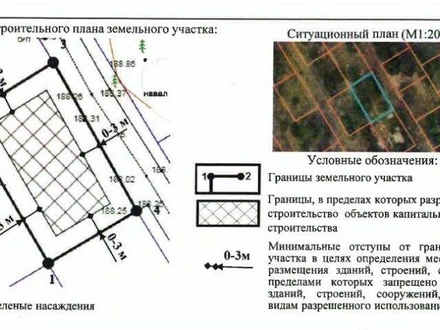 В соответствии с Градостроительным планом земельного участка (ГПЗУ), на территории (см. в Приложении) законно с соблюдением необходимых отступов от соседей можно расположить дом площадью 40% от общей площади участка, высотой до 3 этажей (12 метров), что предполагает возможность строительства объекта с пятном застройки до 285 м.кв., т.е. максимально 14х20м. с учётом отступов.
