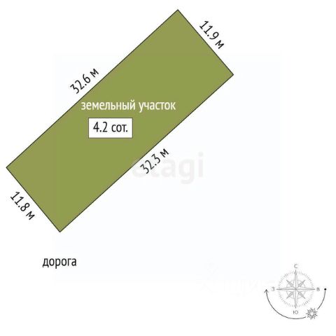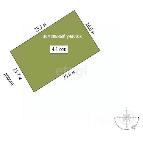 Размеры сторон участка: 32,07 м., 31,12 м., 20,96 м., 24,55м.