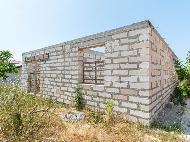 Однокомнатный садовый дом размером 5х4 метра и два подсобных помещения для хранения стройматериалов и инвентаря.